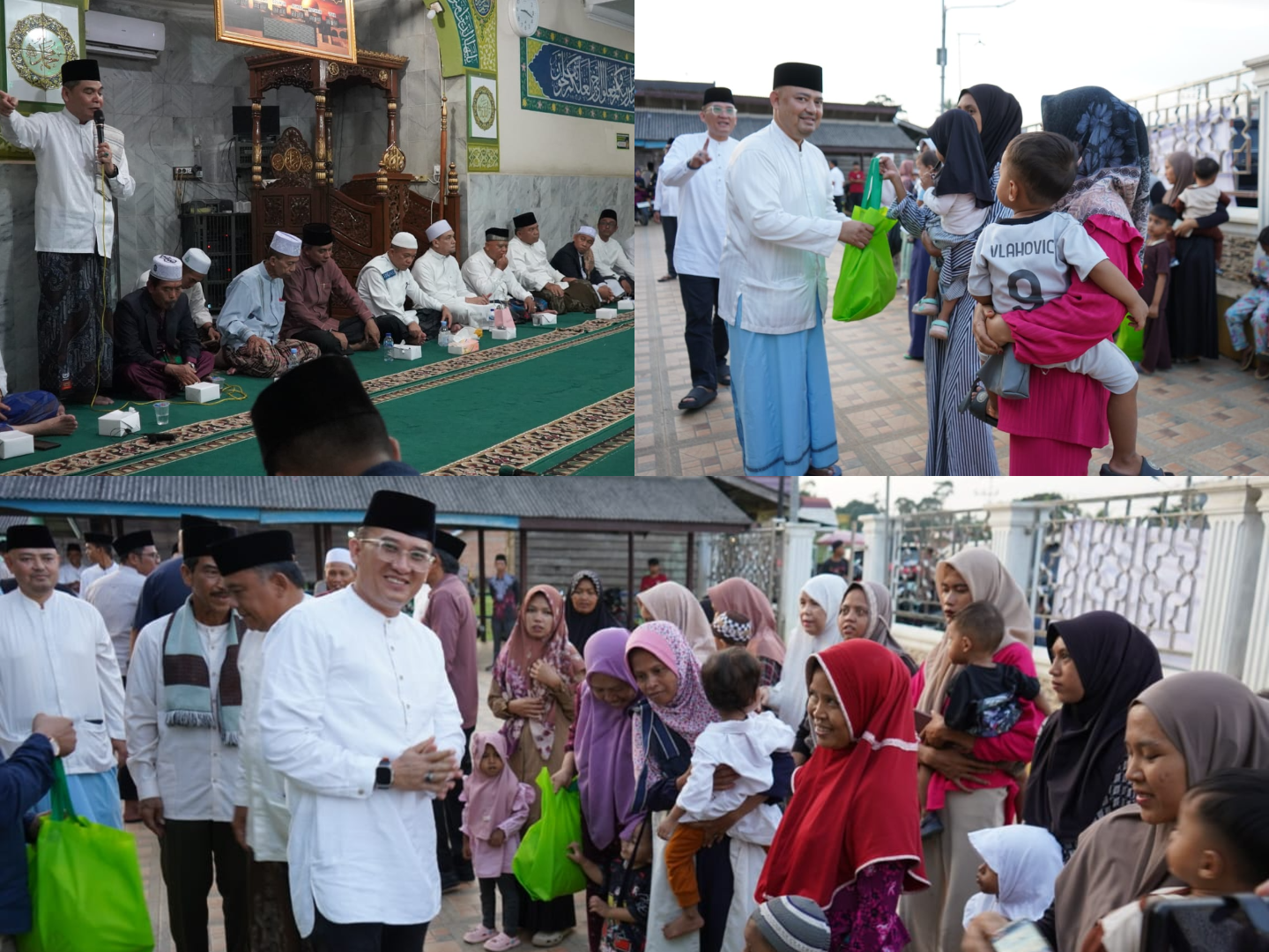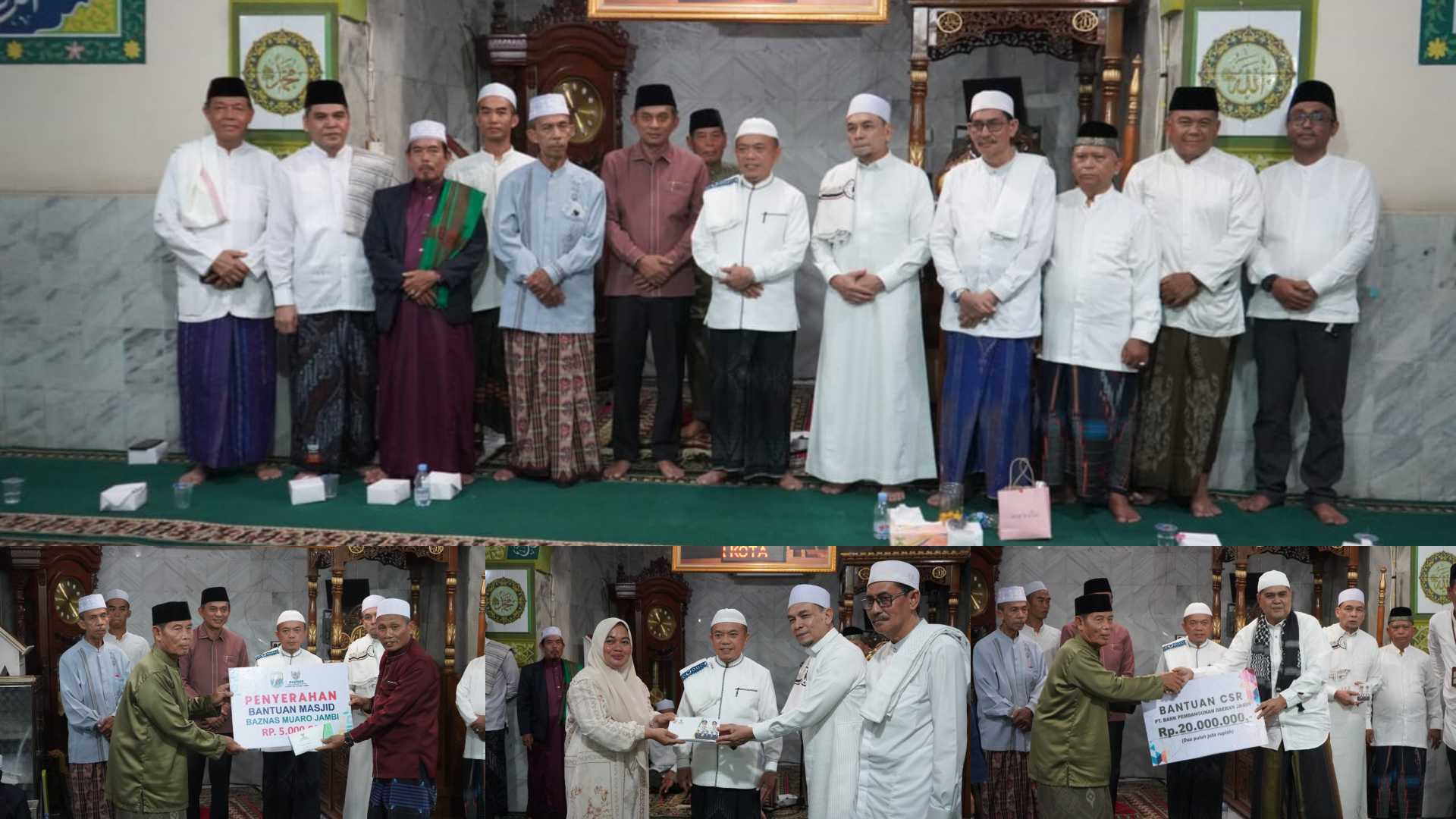 Usai sholat isya dan tarawih bersama Gubernur Al Haris menyerahkan beberapa bantuan, diantaranya bantuan CSR dari Bank 9 Jambi Rp. 20 juta dan bantuan dari Baznas Provinsi Jambi Rp. 5 juta kepada pengurus Masjid Nurusa’adah serta bantuan untuk kaum dhuafa dan anak yatim juga dari Baznas Provinsi Jambi sebanyak 20 paket.