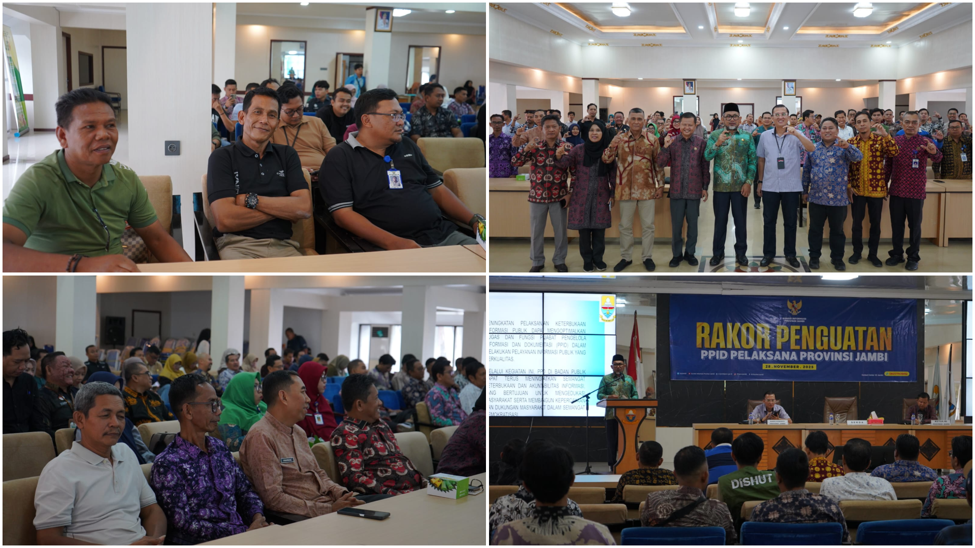 Rakor ini turut dihadiri Kadis Kominfo Provinsi Jambi Drs. Ariansyah, ME, Ketua Komisi Informasi Provinsi Jambi Ahmad Taufiq Helmi, serta para peserta PPID dari berbagai perangkat daerah.