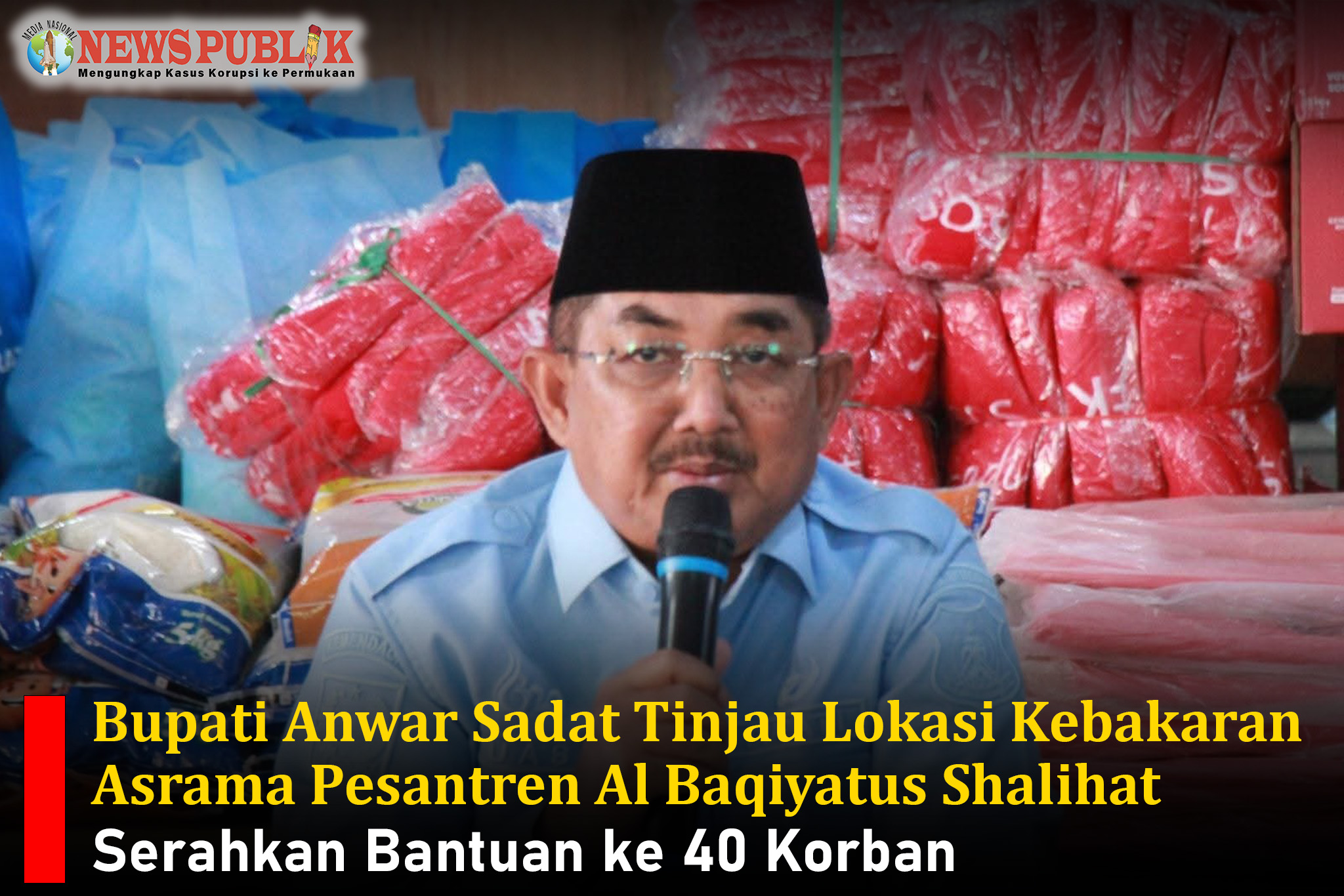 Bupati Anwar Sadat Tinjau Lokasi Kebakaran Asrama Pesantren Al Baqiyatus Shalihat, Serahkan Bantuan ke 40 Korban