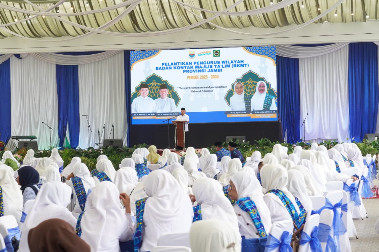 Gubernur Jambi Al Haris menghadiri pelantikan PW BKMT Jambi 2025–2030 dan mengajak BKMT memperluas peran sosial, pendidikan, serta pemberdayaan umat.