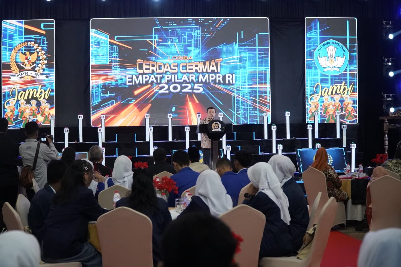 Hal tersebut disampaikan Gubernur Al Haris saat menghadiri Lomba Cerdas Cermat 4 Pilar Kebangsaan Tingkat Provinsi Jambi yang diselenggarakan oleh Majelis Permusyawaratan Rakyat Republik Indonesia (MPR RI) di Swiss-Belhotel Jambi, Sabtu (04/10/2025).
