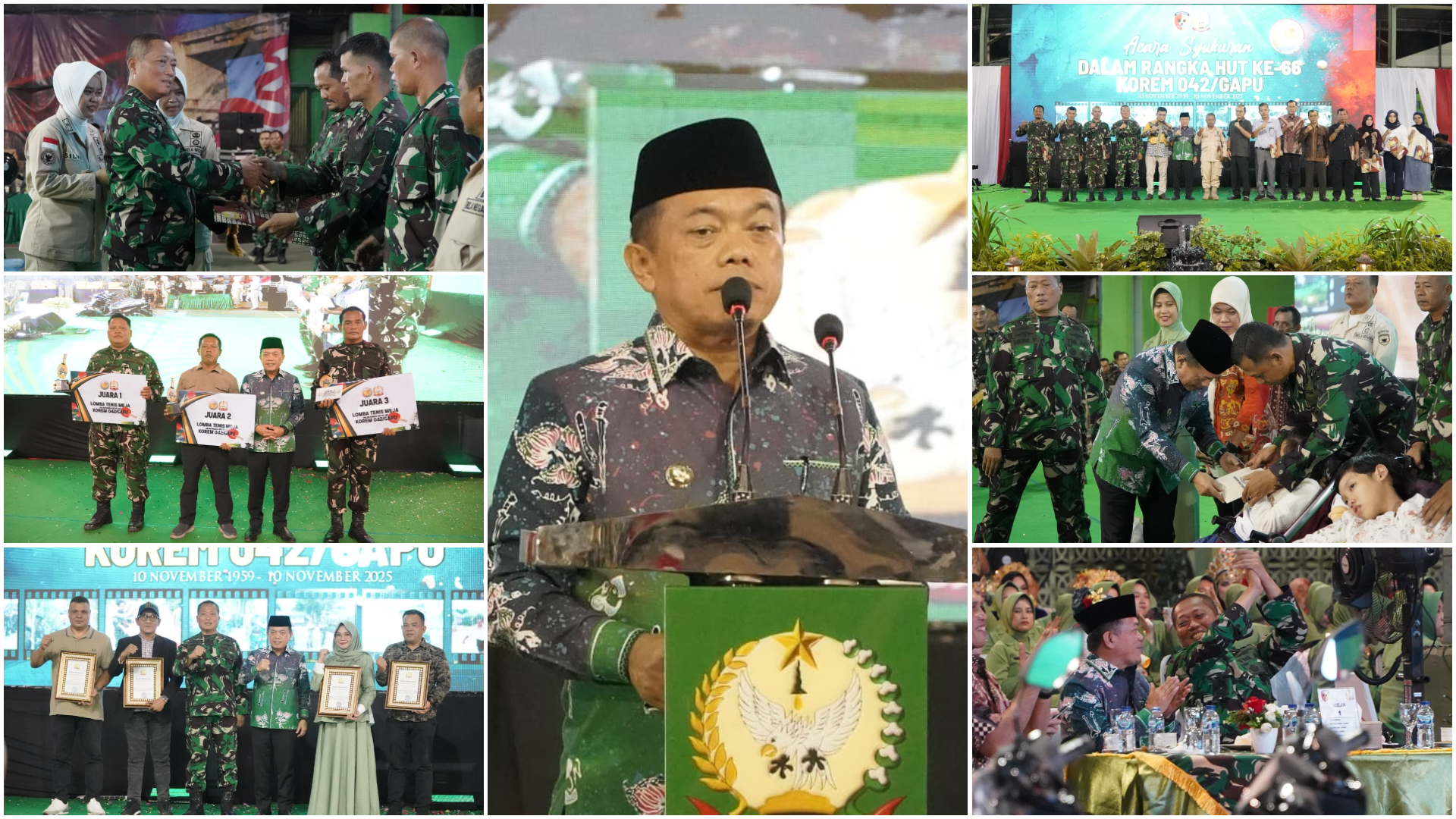 Hadiri Syukuran HUT ke‑66 Korem 042/Gapu, Gubernur Al Haris: Pemprov siap Dukung Pembangunan Kodam dan Pangkalan Udara Baru
