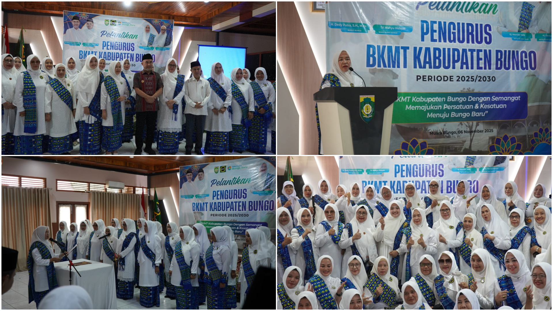 NEWS PUBLIK, Muara Bungo – Ketua TP-PKK Provinsi Jambi yang juga Ketua Pengurus Wilayah Badan Kontak Majelis Taklim (PW-BKMT) Provinsi Jambi, Hj. Hesnidar Haris, SE (Hesti Haris), secara resmi melantik Pengurus Daerah BKMT Kabupaten Bungo periode 2025–2029 yang diketuai oleh Elza Kurniawati.
