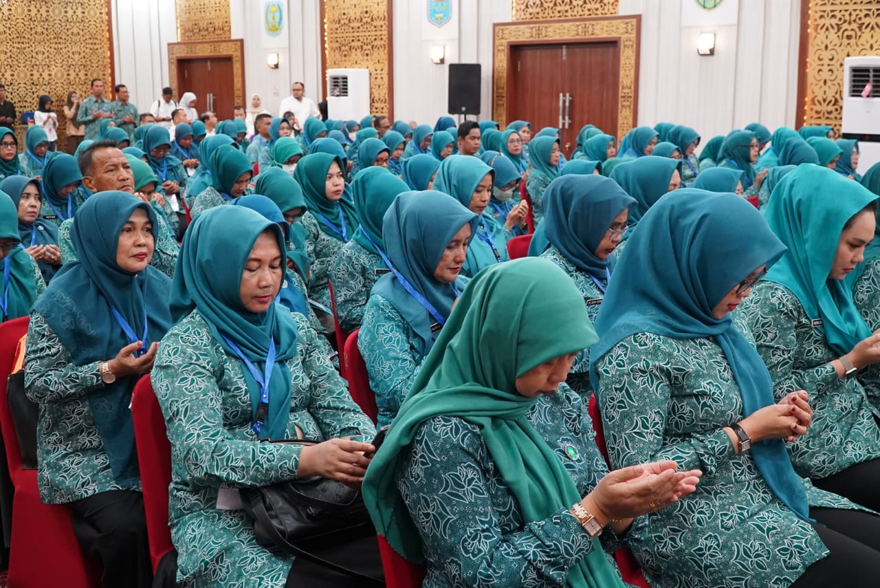 Ketua TP-PKK Provinsi Jambi Hj. Hesti Haris membuka Bimtek Peningkatan Kapasitas Pengurus PKK se-Provinsi Jambi di Kantor Gubernur Jambi.