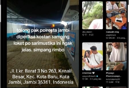 Kosan yang berlokasi di Jl. Lingkar Barat 3 No. 263, Kenali Besar, Kecamatan Kota Baru, Jambi (36361) tersebut diduga menjadi tempat prostitusi online dan aktivitas melanggar hukum.