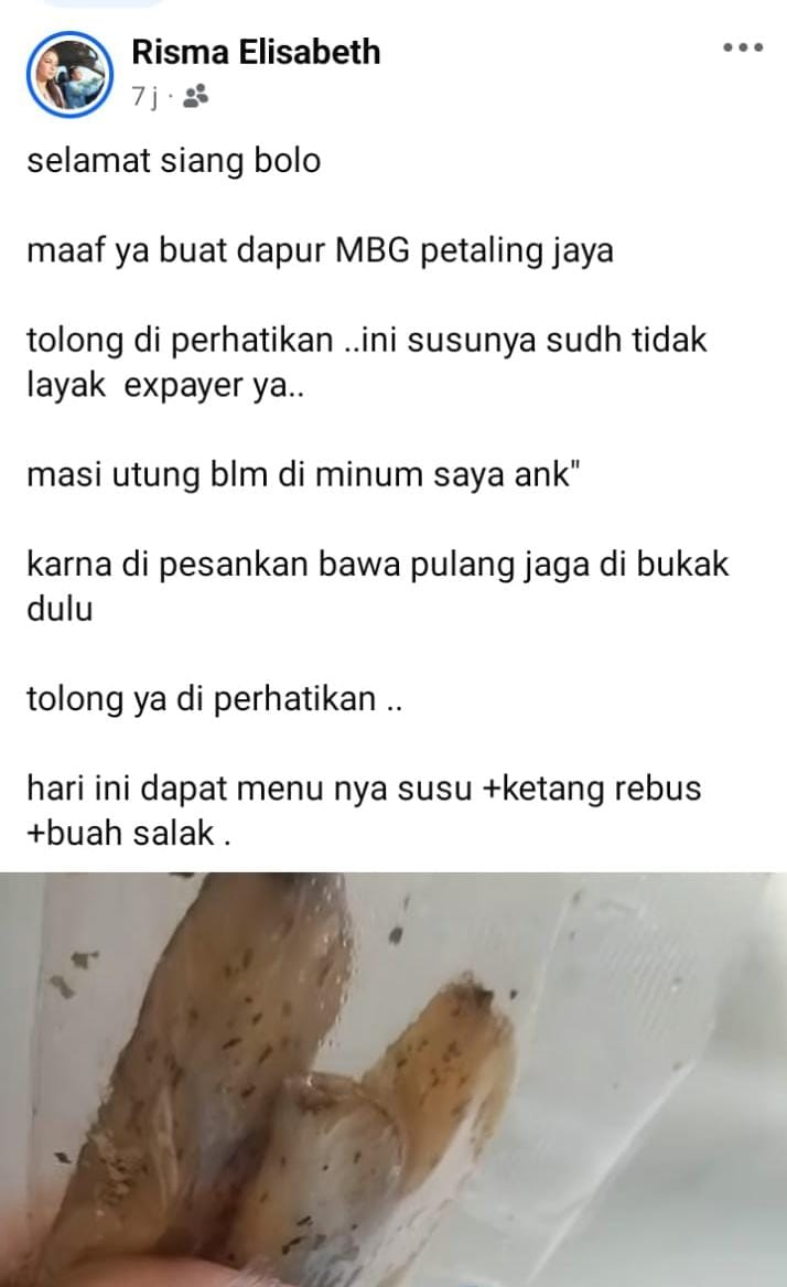 “Selamat siang bolo, maaf ya buat dapur MBG Petaling Jaya tolong diperhatikan. Ini susunya sudah tidak layak dan expired. Masih untung belum diminum anak-anak saya karena dipesankan bawa pulang jangan dibuka dulu,” ungkapnya.