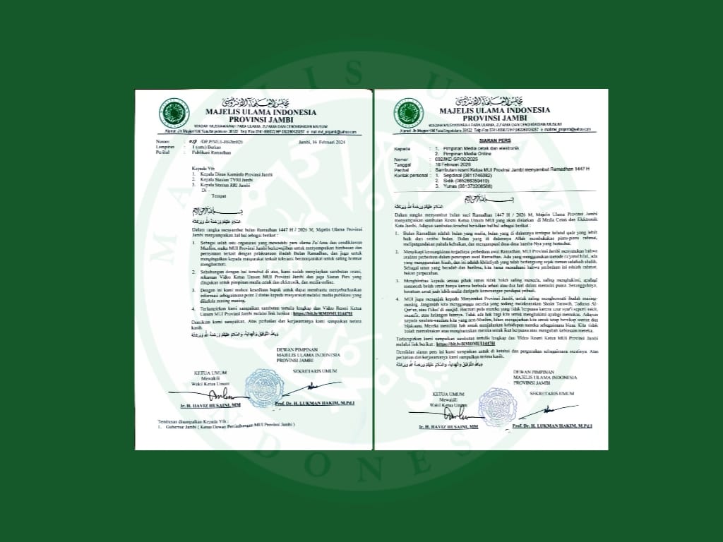 NEWS PUBLIK | Jambi – Majelis Ulama Indonesia (MUI) Provinsi Jambi secara resmi merilis seruan bagi seluruh umat Muslim dan masyarakat di Bumi Sepucuk Jambi Sembilan Lurah dalam rangka menyambut bulan suci Ramadhan 1447 Hijriah/2026 Masehi. Melalui siaran pers resmi yang dikeluarkan pada 16 Februari 2026, MUI menekankan pentingnya menjaga ukhuwah (persaudaraan) dan semangat toleransi di tengah potensi perbedaan awal puasa.