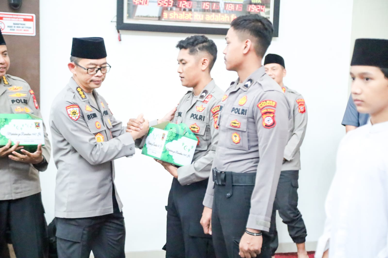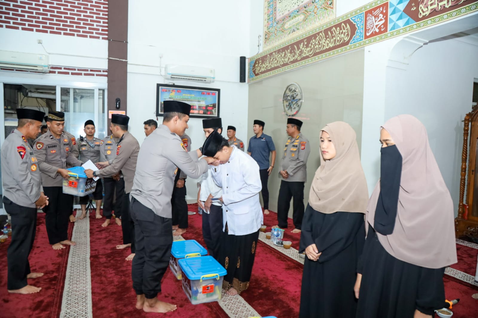 Usai salat Maghrib, acara dilanjutkan dengan pemberian santunan kepada sejumlah anak yatim piatu. Kapolda secara simbolis menyerahkan bingkisan dan uang saku, disambut haru para penerima dan jamaah yang hadir.