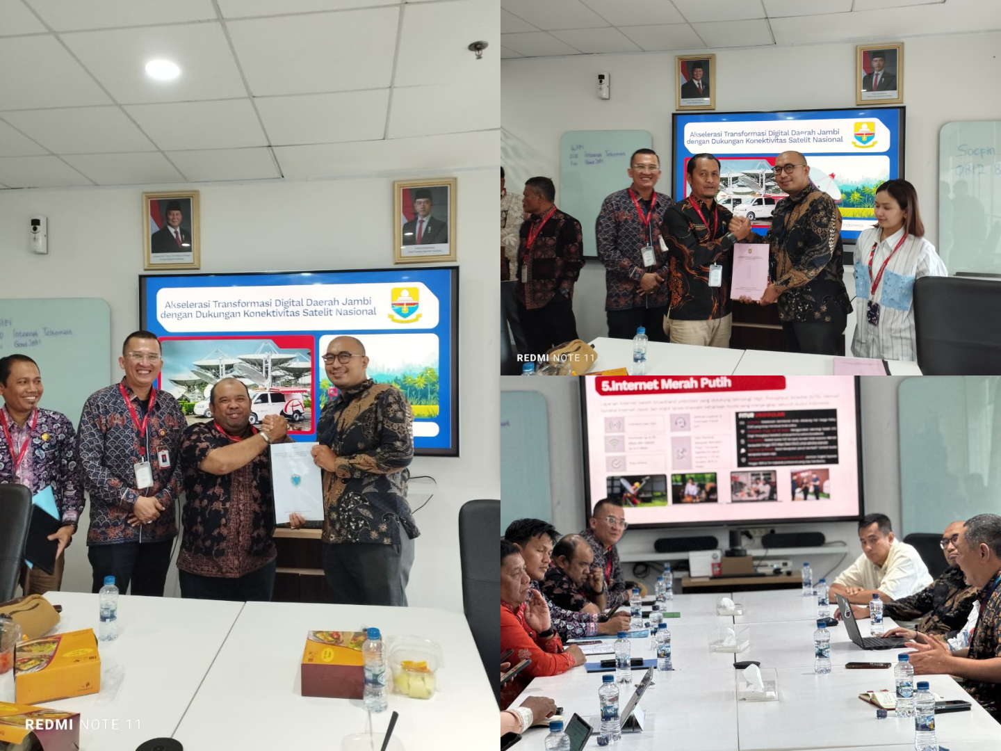 Rombongan Diskominfo Provinsi Jambi dan Kabupaten/Kota diterima langsung oleh manajemen PT Telkomsel dan PT Telkomsat. Dalam pertemuan tersebut hadir Vice President LBCC Telkomsel Philipus Nanang, General Manager Telkomsat Widi Sulistyanto, Account Manager PT Telkom Nabila, serta Vidiyan selaku Presales Engineer.