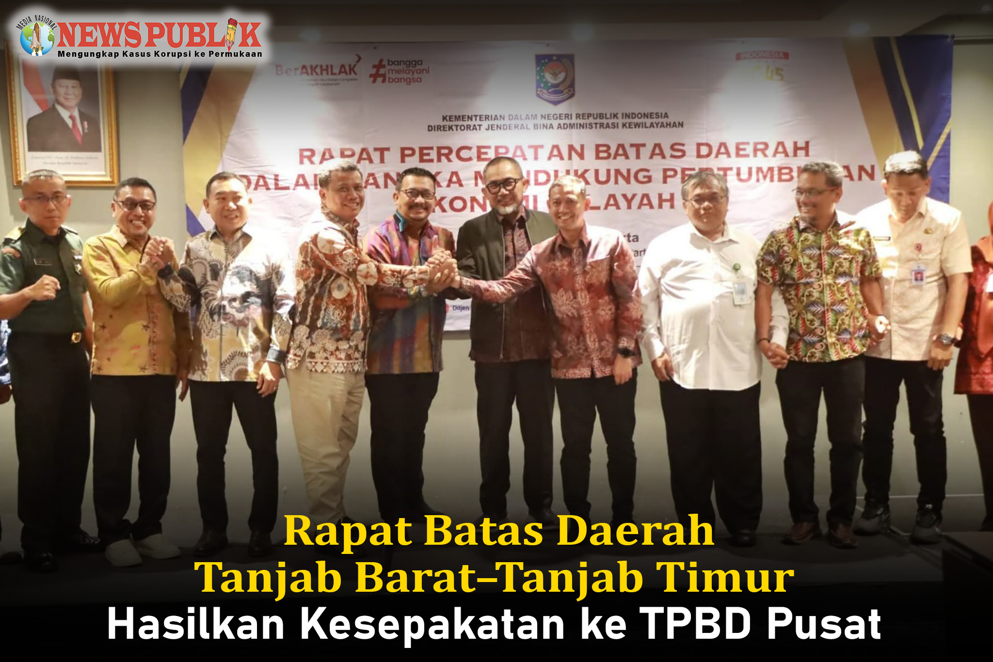 NEWS PUBLIK | JAKARTA – Rapat percepatan penegasan batas daerah antara Kabupaten Tanjung Jabung Barat (Tanjab Barat) dan Kabupaten Tanjung Jabung Timur (Tanjab Timur) menghasilkan kesepakatan untuk menyerahkan penyelesaian sengketa batas kepada Tim Penegasan Batas Daerah (TPBD) Pusat. Rapat yang diselenggarakan oleh Direktorat Jenderal Bina Administrasi Kewilayahan Kementerian Dalam Negeri berlangsung di Aula Hotel Orchardz Jayakarta, Jl. Mandala No. 44, Jakarta Pusat, Senin (9/2).