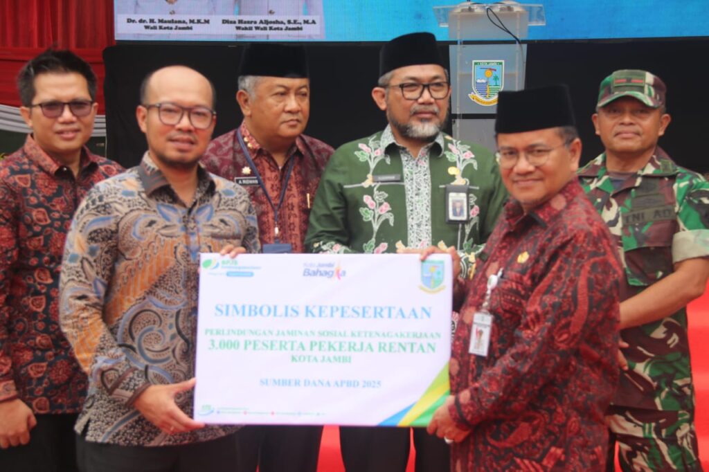 Jamsostek Kota Jambi Tahun 2025. Kegiatan ini merupakan langkah strategis dalam meningkatkan perlindungan bagi tenaga kerja, yang sejalan dengan upaya peningkatan kesejahteraan mereka,” ujarnya.