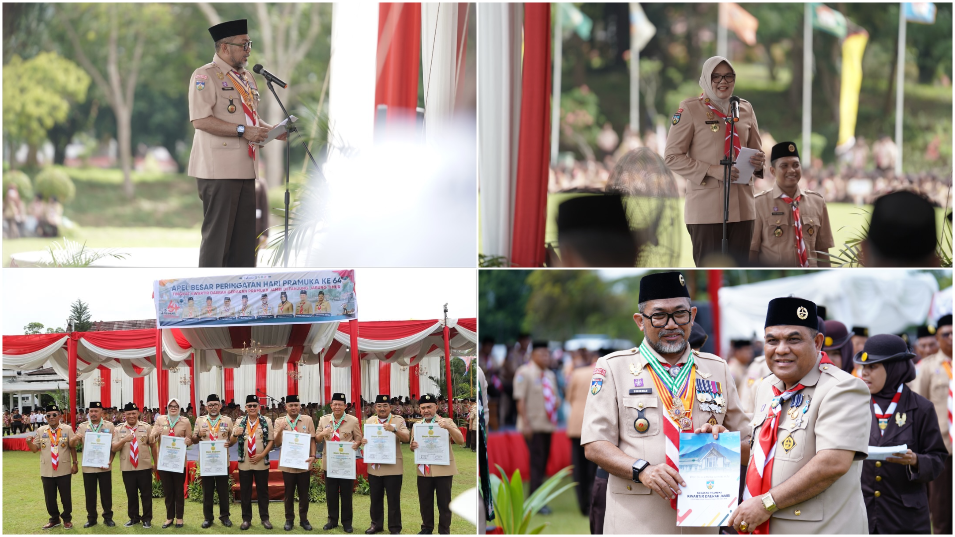 Usai upacara, Kwarnas menyerahkan piagam penghargaan kepada para Ketua Kwarcab se-Provinsi Jambi. Kegiatan dilanjutkan dengan berbagai atraksi Pramuka Tanjabtim, termasuk tarian bendera semapoer yang menggambarkan semangat Hari Pramuka ke-64.
