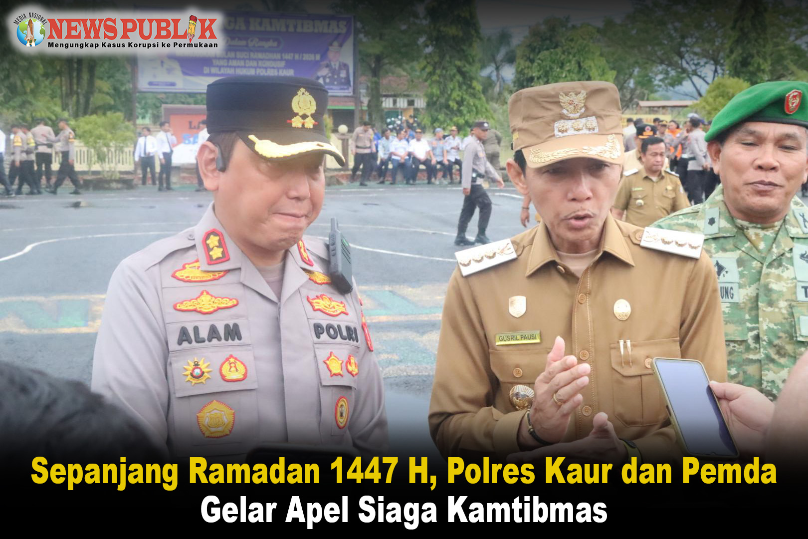 NEWS PUBLIK | Kaur – Guna memastikan kekhusyukan masyarakat dalam menjalankan ibadah puasa di Bulan Suci Ramadan 1447 H/2026, Polres Kaur dan Pemda menggelar Apel Siaga Keamanan dan Ketertiban Masyarakat (Kamtibmas) di Lapangan Satya Haprabu, Selasa (24/02/2026).