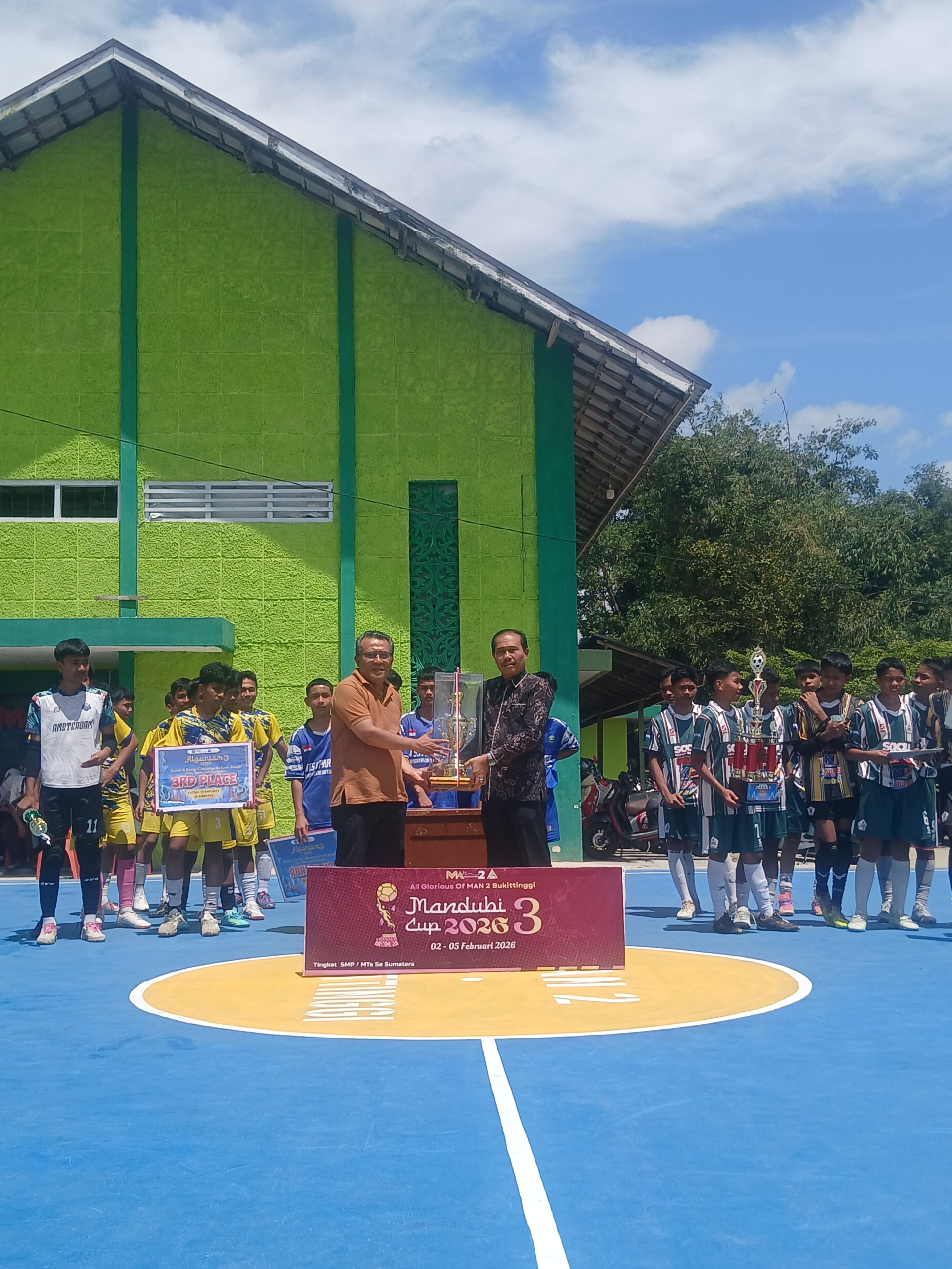 Bidang olah raga futsal RIDHO KURNIAWAN, HABIBI HARIANTO, ALFADITO JUNIO ROLEN, KAHLIL GIBRAL, KAFKA VANPERSI, HAFUZA ALTAF, TIO RAMADHAN, GALIBSY’ADI RIFAT, RAFID GUSTI MAJID, M. REVANSA BARISQI berhasil meraih juara 1 (satu) tingkat se Sumatra pada tanggal 2-5 februari 2026 ALGORISM ke 3 MAN 2 Bukittinggi.
