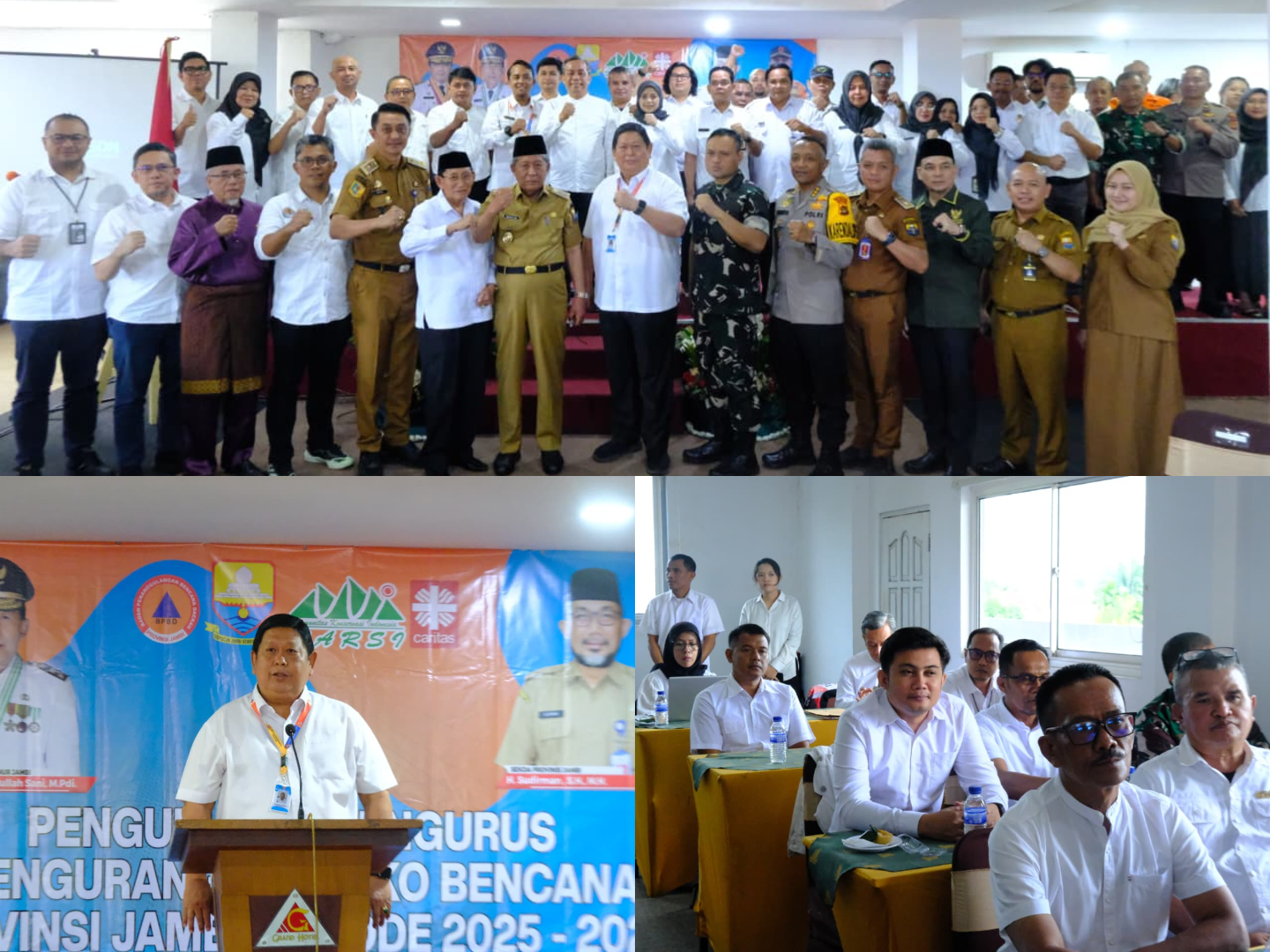 NEWS PUBLIK | JAMBI – Wakil Gubernur Jambi Drs. H. Abdullah Sani, M.Pd.I secara resmi mengukuhkan pengurus Forum Pengurangan Risiko Bencana (FPRB) Provinsi Jambi periode 2025-2028, bertempat di Ruang Bulian, Grand Hotel Jambi, Selasa (10/2/2026).